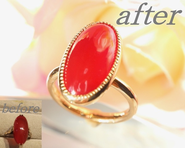 | NO26 カンザシに使用されていた上品な色合いのピンクサンゴ。 輝き失っていましたが、軽く研磨するだけで写真のように生まれ変わりました。 シェル付きのバチカンにセットすると 和のイメージのサンゴとモダンなデザインのベストマッチに。 店長もびっくり!! やはりジュエリーは奥深いものだと改めて感じさせられました。 |