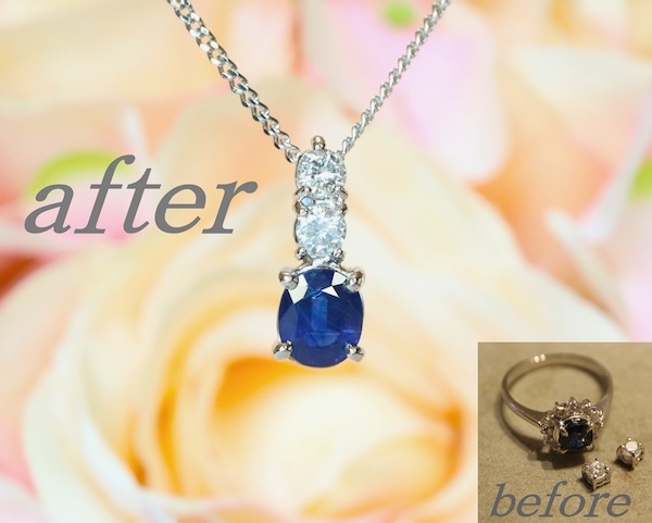 | NO22 Pt900サファイヤメレダイヤ入り プチペンダントリフォーム例 |